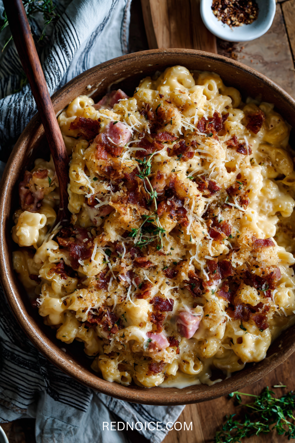 Baked mac and cheese version: Transfer to a buttered 9×13 baking dish, top with the breadcrumb mixture, and bake at 375°F for 20 to 25 minutes until golden and bubbling. Rest 5 minutes before serving. Great for feeding a crowd.